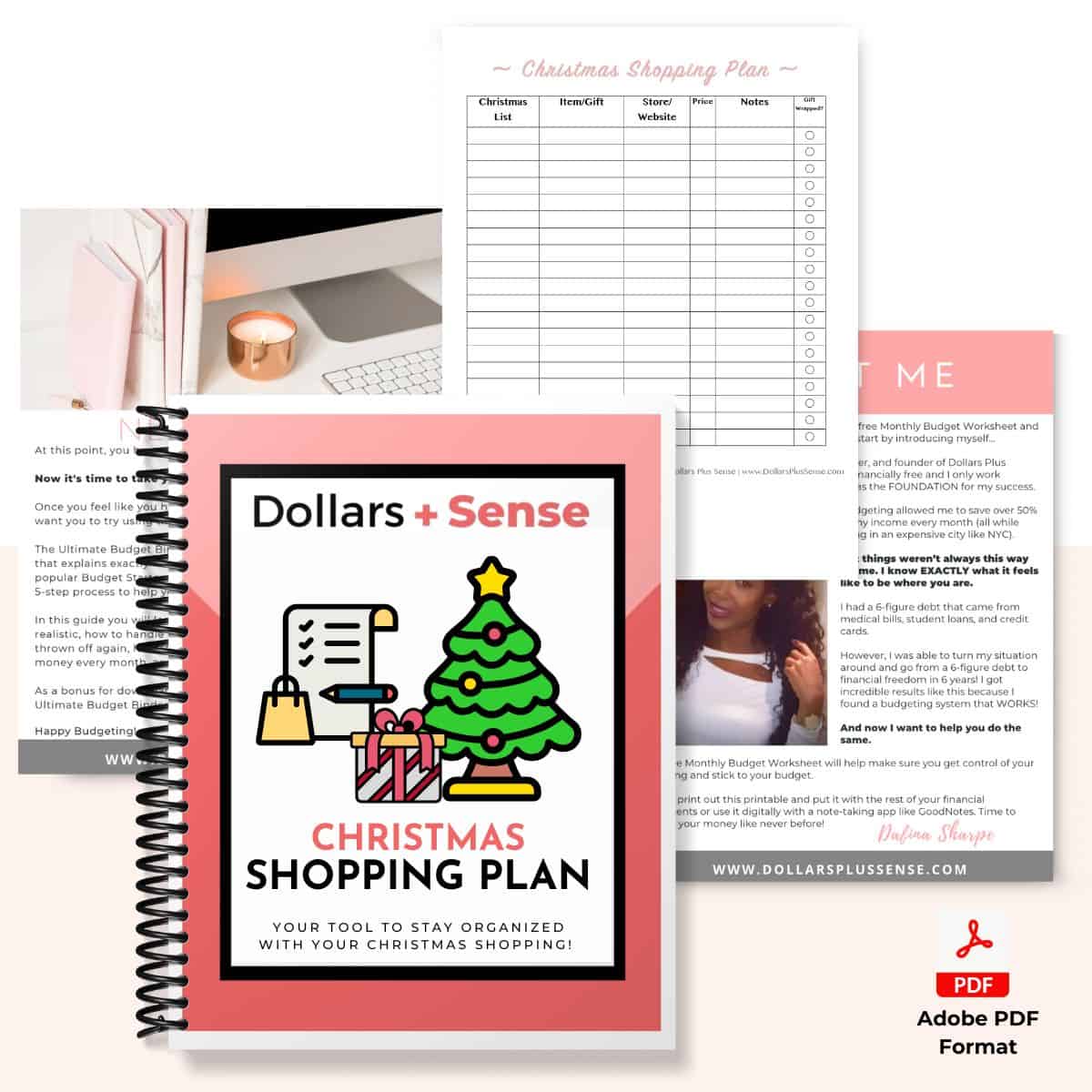 A 5-page Christmas Shopping Plan workbook that contains: